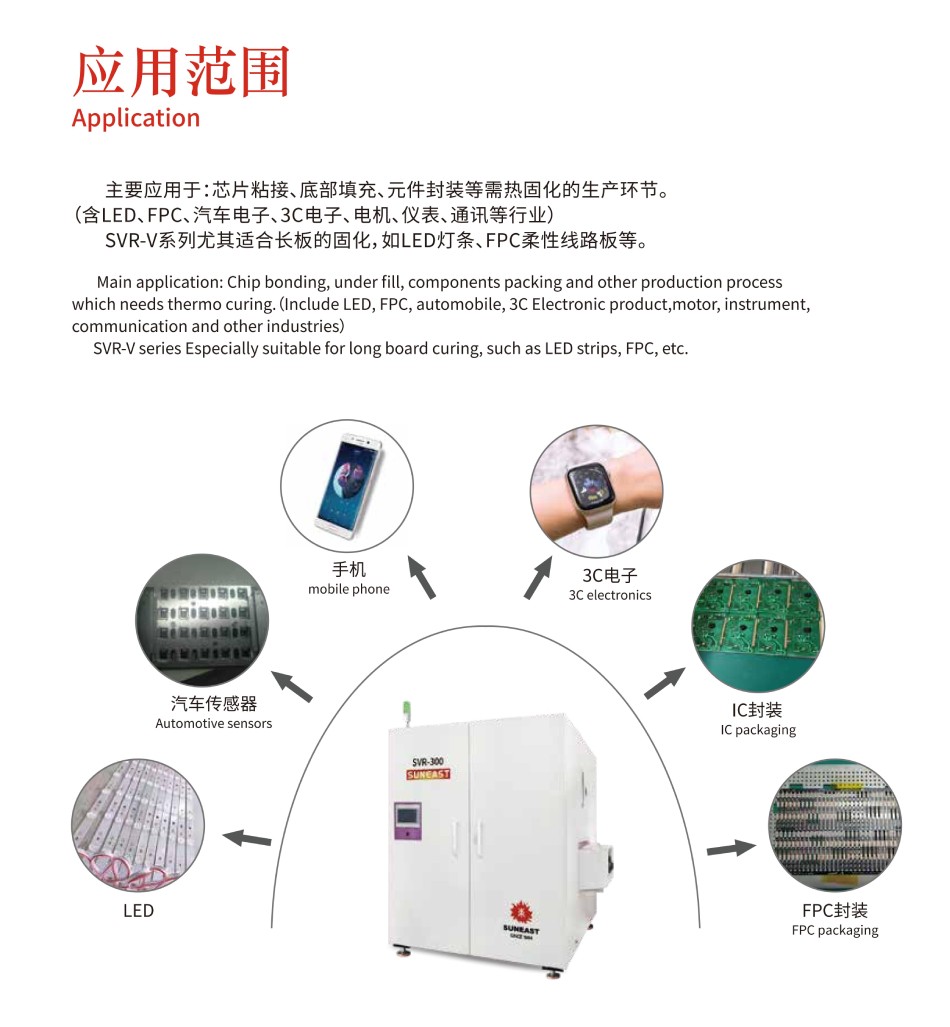 主要應用于:垂直爐SVR-V系列尤其適合長板的固化,如LED燈條、FPC柔性線路板等。