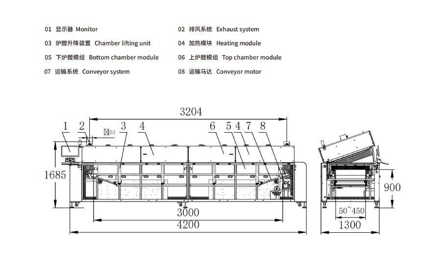 1.注明:根據產能要求,推薦溫區數量優先選擇:4溫區、5溫區、 8溫區、9溫區、10溫區、12溫區,可定制。