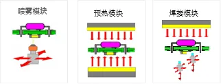 預熱模塊由底部預熱、頂部預熱、焊接保溫模塊組成。各溫區獨立循環、獨立控溫。可根據產品尺寸,自動關閉產品尺寸范圍外的加熱,節能簡單。