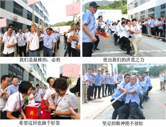 人力行政中心王亞平總監(jiān)致開幕詞,鼓勵各隊拿出團隊拼搏的精神全力以赴,祝賀各隊賽出好成績,比出好風采!并發(fā)起了比賽開始的號令。各隊抽簽完畢,第一項拔河比賽正式拉開戰(zhàn)幕!第一組迎來的是生產(chǎn)隊和研發(fā)中心隊的對決。一邊是著藍色工衣的實力選手,一邊是著白色工衣的技術精英,在賽場兩邊擠滿了為各隊加油的啦啦隊,場上場下比賽氣氛十分緊張。一聲哨響,麻繩在雙方的拉扯下擺動起來,隊員都死死地拽著繩子,拼力想拉著它往自己的方向移動,所有人的身體都一起向后傾斜著,全身都在發(fā)力。場上的啦啦隊更是賣足了力氣,為隊伍喊口號,給隊員鼓勁,助威聲沸騰在比賽現(xiàn)場。