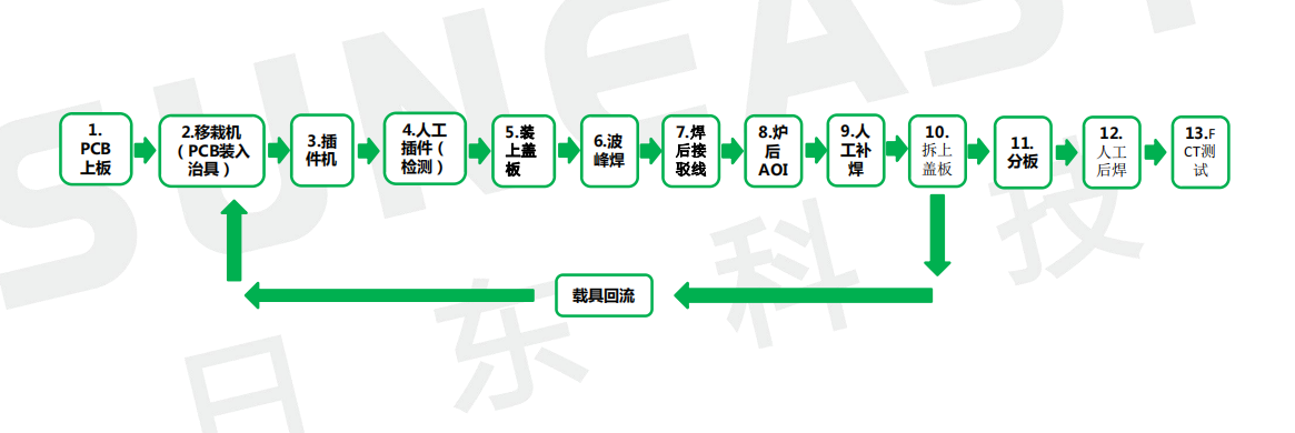 c.保證放在噴霧型波峰焊機傳送帶的接連2快板之間的間隔不小于5CM;