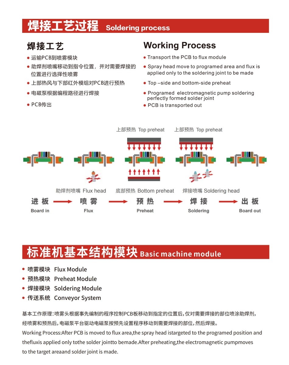 | 噴霧模塊 | 預(yù)熱模塊 | 焊接模塊 | 傳送系統(tǒng) |